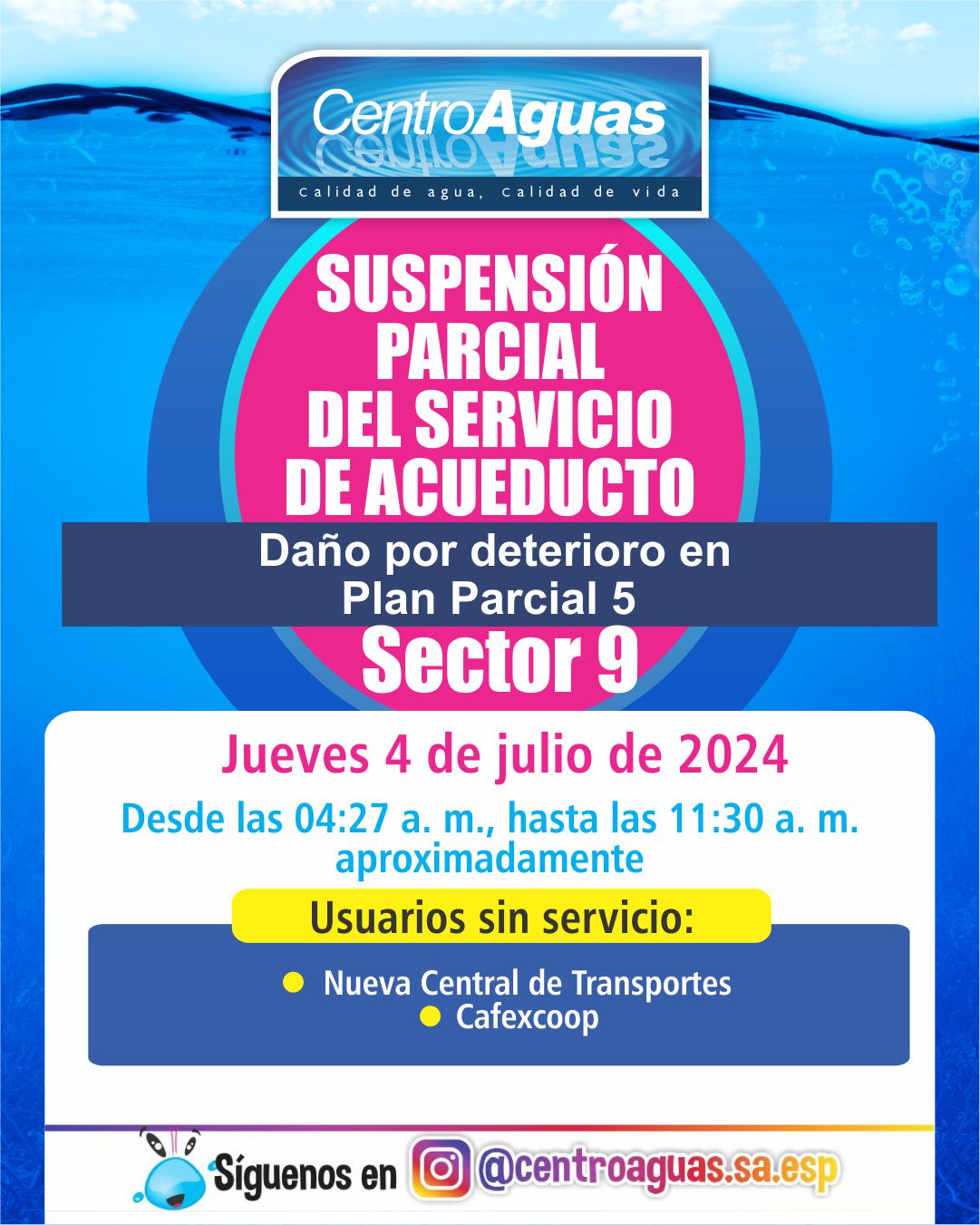 Suspensión parcial del servicio de acueducto en el sector 9 Escrito por Comunicaciones Centroaguas. Publicado en Noticias Frescas Anterior Siguiente